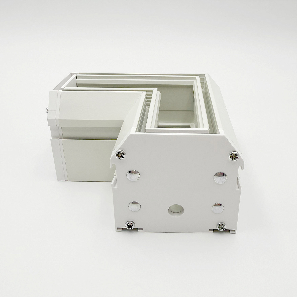 Кутовий конектор 90 градусів призначений для з'єднання двох відрізків магнітного треку Skarlat RGD S48V під прямим кутом. Цей елемент дозволяє створювати гнучкі конфігурації освітлення, забезпечуючи цілісність і безперервність електроживлення по всій системі.