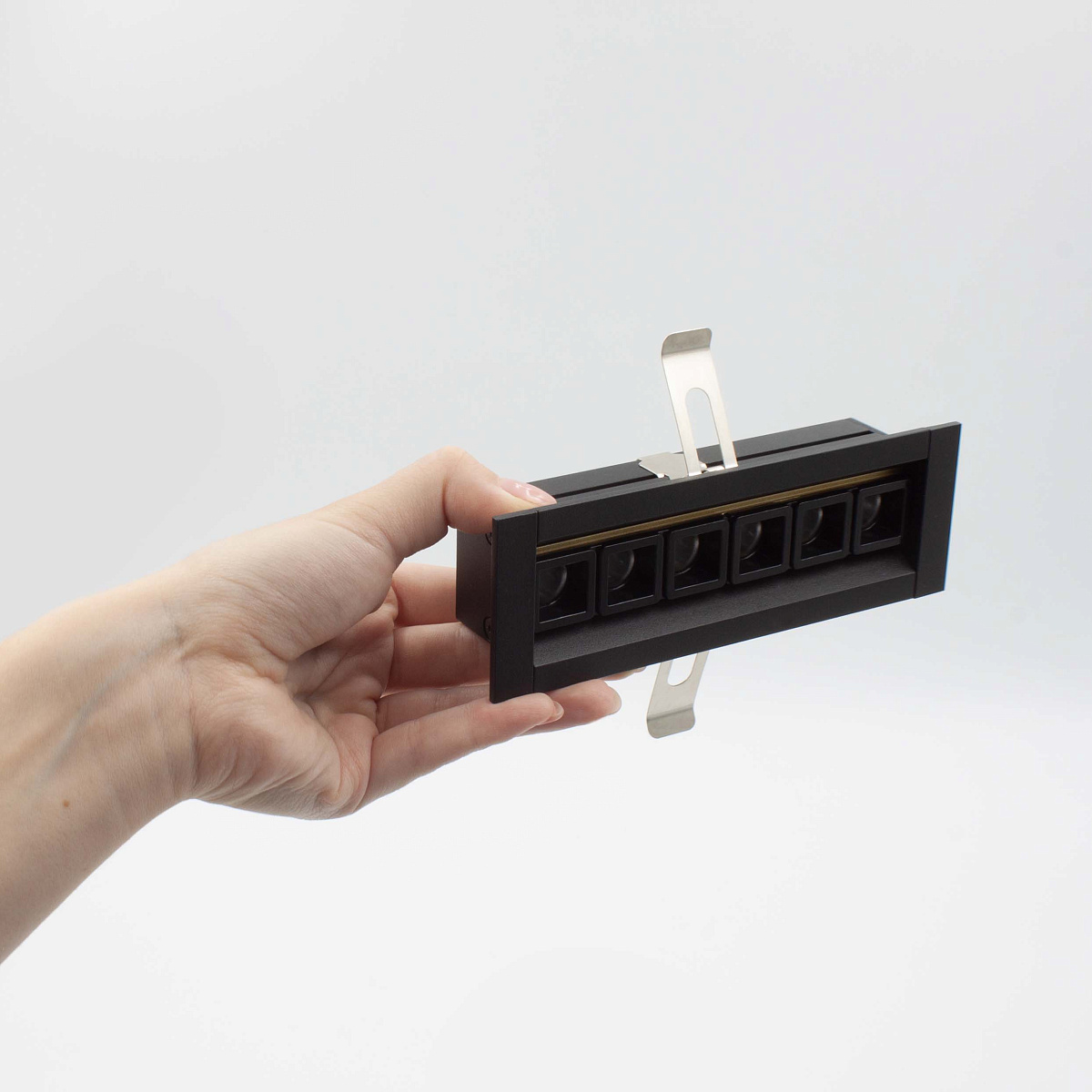 Дана серія вбудованих лінійних світильників представлена трьома різними моделями: для створення спрямованого, розсіяного світла і для освітлення стін. Положення світильника щодо стелі можна відрегулювати легким натисканням на корпус. Установка такого виробу з декоративною рамкою вигідно приховує всі можливі нерівності монтажу.