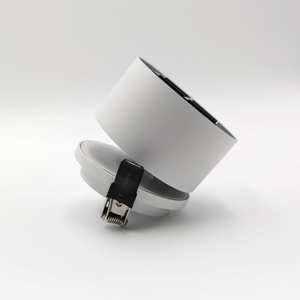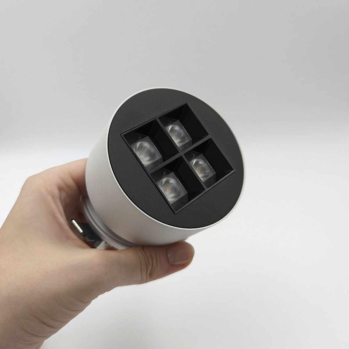 Корпус виробу виконаний у циліндричній формі з квадратними отворами, всередині них вбудовано яскравий світлодіод.