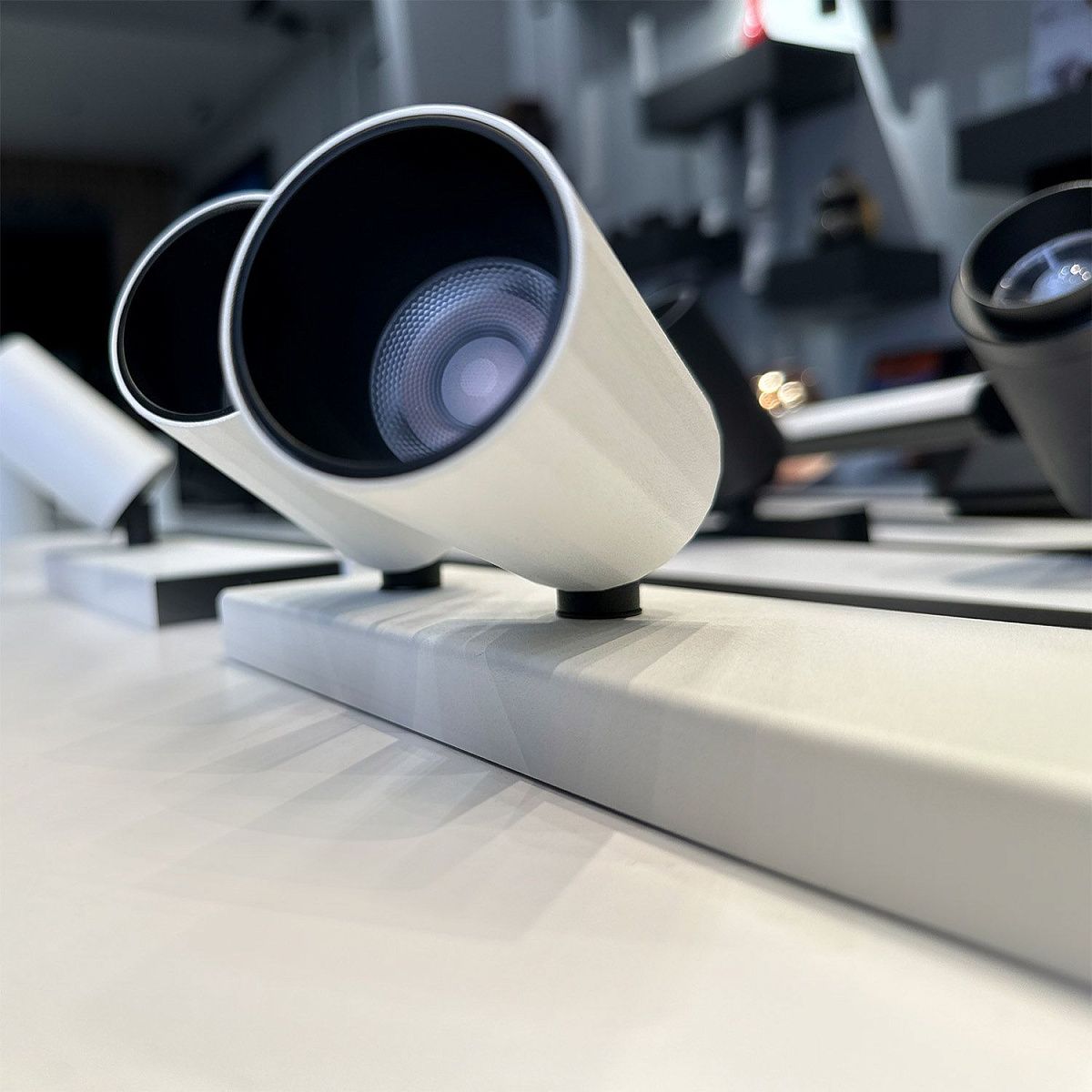 Спот виготовлений з високоякісного алюмінію. Таку модель обладнано накладною основою, на котру прикріплено один або два плафони. Освітлювальні прилади серії TIRA розраховані для мережі 220V.