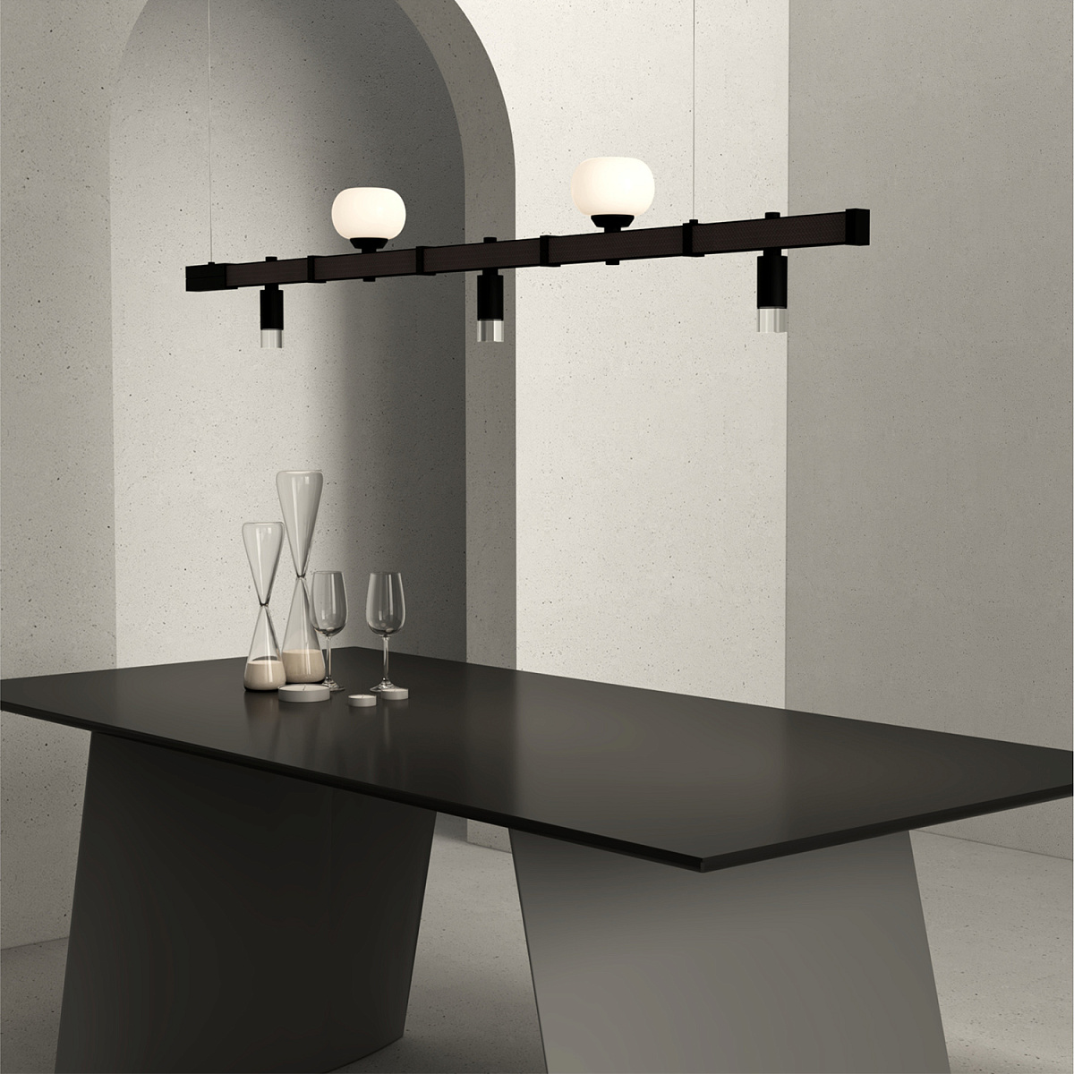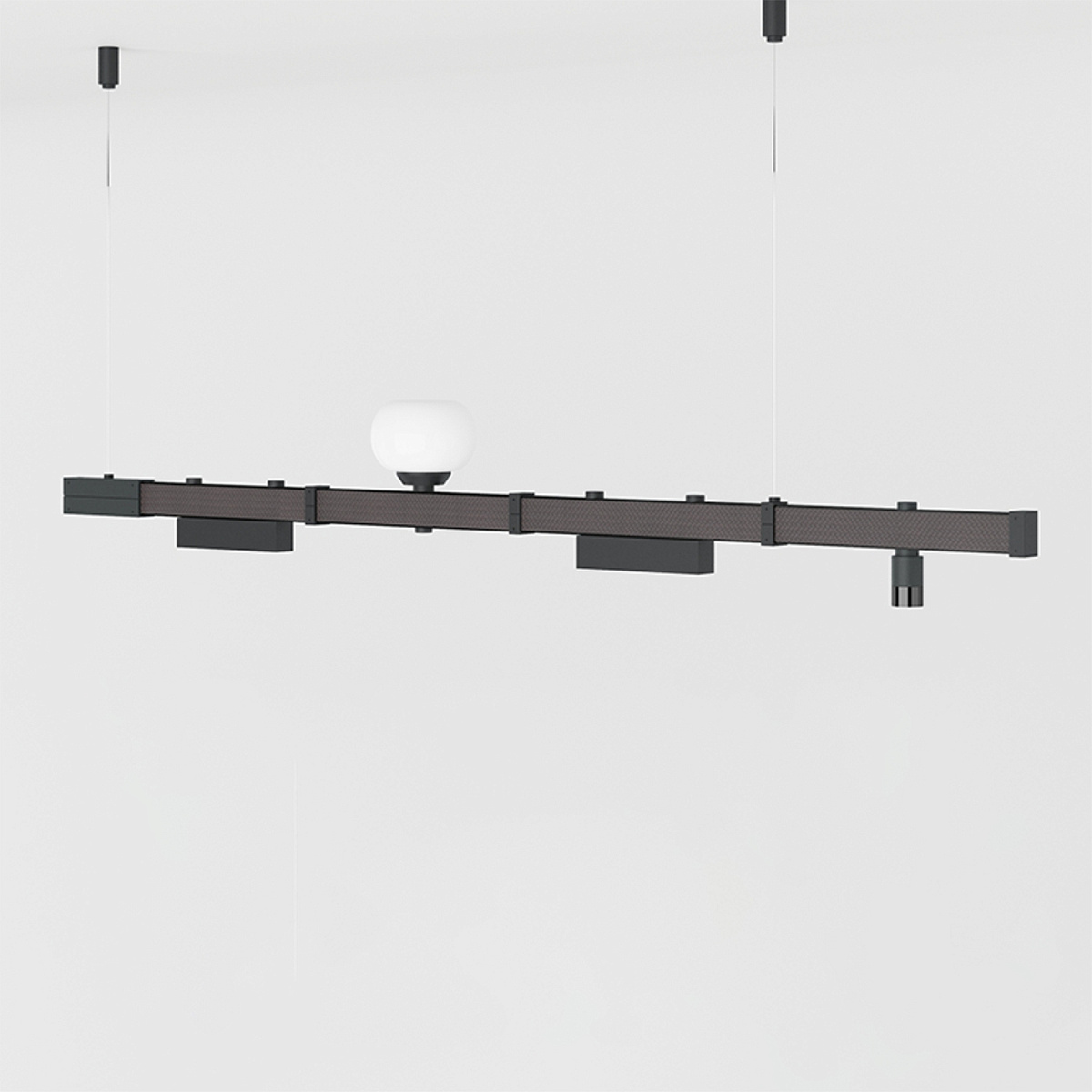 Універсальність MODENA проявляється і в виборі світильників: до системи можна інтегрувати споти, підвіси, лінійні модулі, що легко змінюються й переміщуються за потреби. Це не просто освітлення — це гнучкий інструмент для формування атмосфери та стилю вашого простору