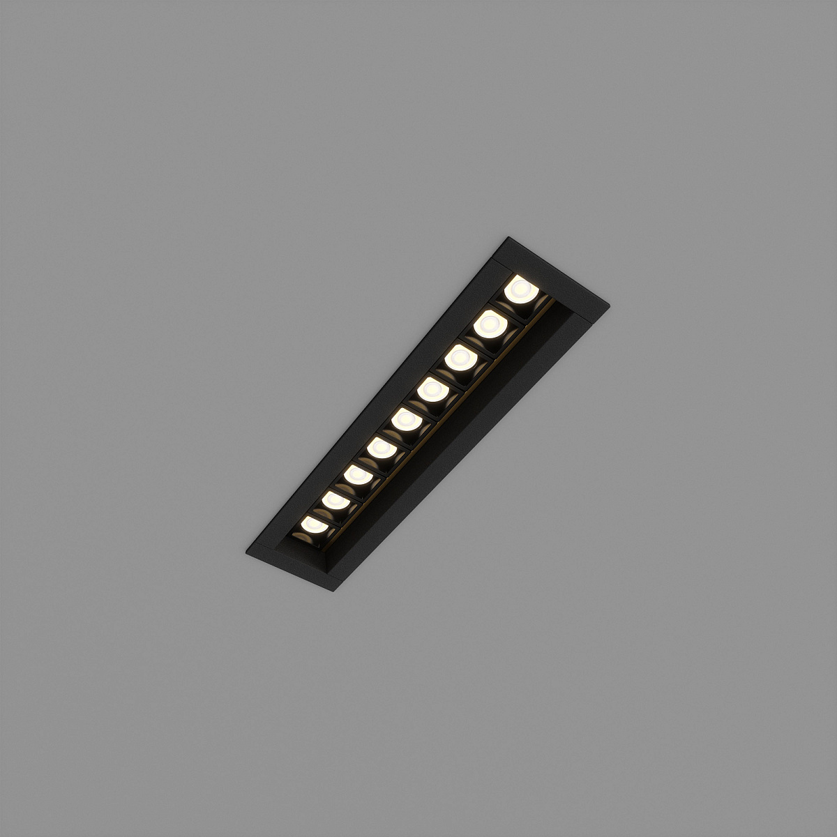 Дана серія вбудованих лінійних світильників представлена трьома різними моделями: для створення спрямованого, розсіяного світла і для освітлення стін. Положення світильника щодо стелі можна відрегулювати легким натисканням на корпус. Установка такого виробу з декоративною рамкою вигідно приховує всі можливі нерівності монтажу.