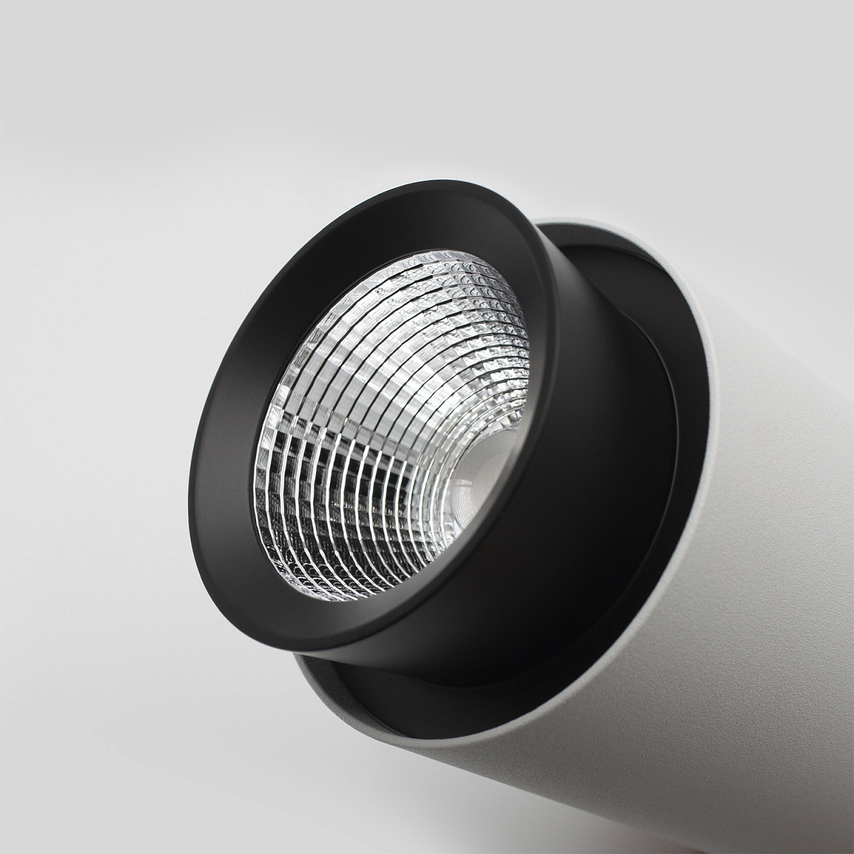 Така поворотна модель вбудовується у будь-який тип стель. Однак клас захисту IP20 вимагає монтувати її винятково всередині приміщень з нормальним рівнем вологості. Представлена у двох колірних рішеннях: біло-чорному та золотому з чорним.
