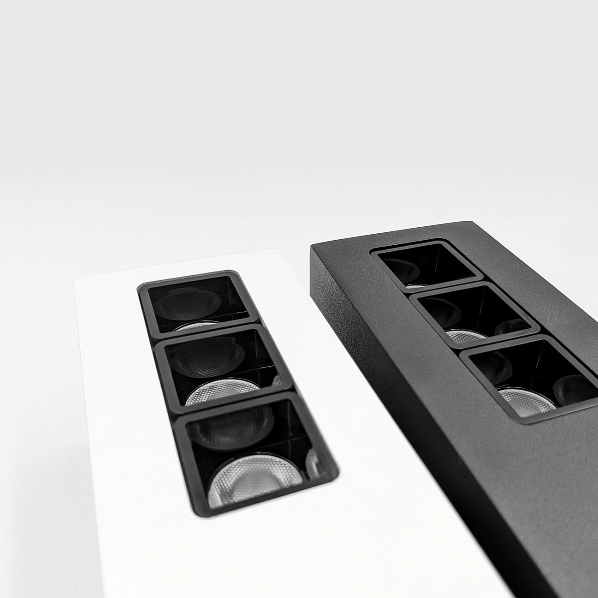 Серія освітлювальних приладів KUBI виготовлена в двох класичних кольорах - чорному та білому. Світильники оснащені вбудованими лінзами, завдяки котрим випромінюють м'яке та комфортне тепле біле світло. Модель можна використовувати як у якості основного, так і акцентного освітлення. Корпус світильника виконаний з міцного та екологічно чистого алюмінію.