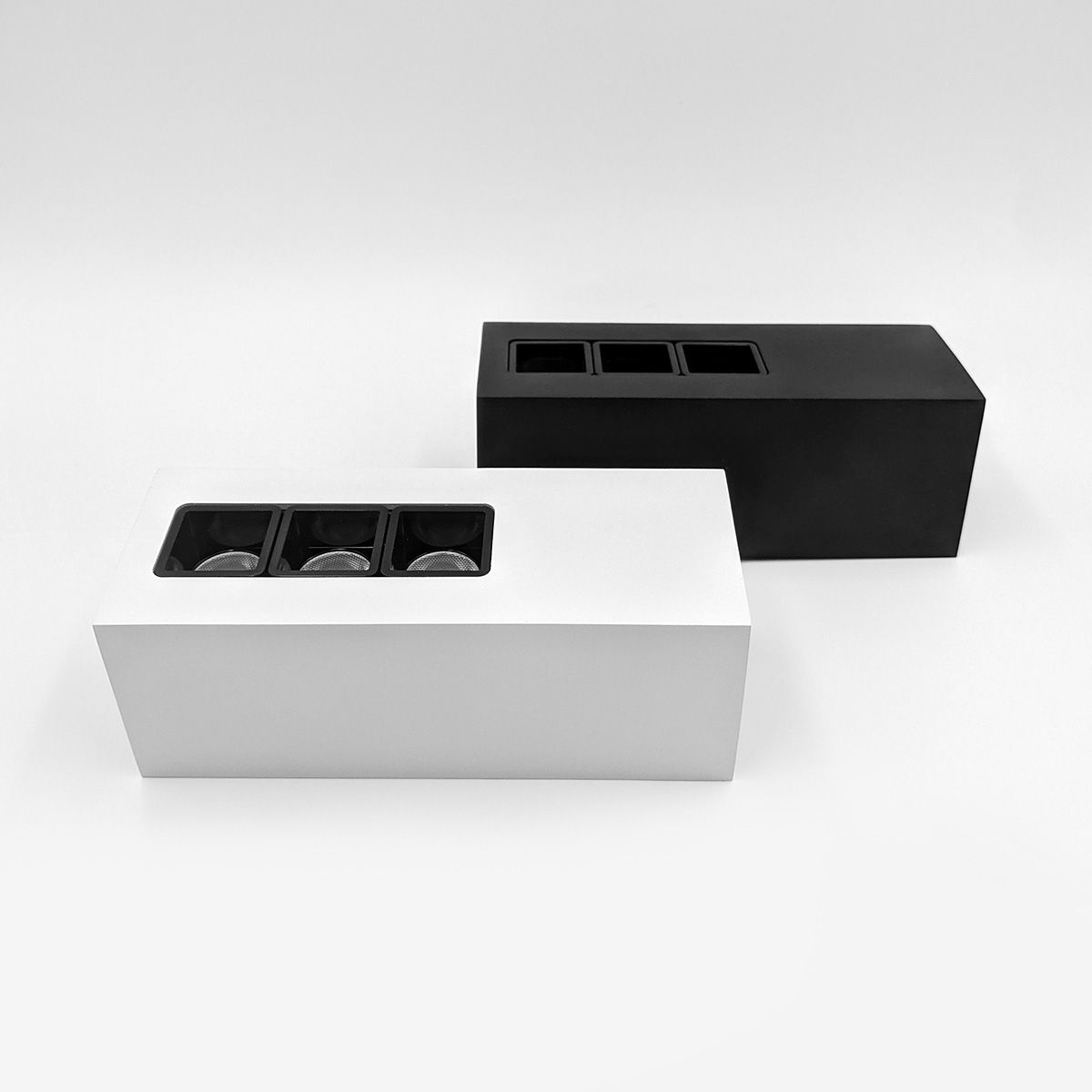 Серія освітлювальних приладів KUBI виготовлена в двох класичних кольорах - чорному та білому. Світильники оснащені вбудованими лінзами, завдяки котрим випромінюють м'яке та комфортне тепле біле світло. Модель можна використовувати як у якості основного, так і акцентного освітлення. Корпус світильника виконаний з міцного та екологічно чистого алюмінію.